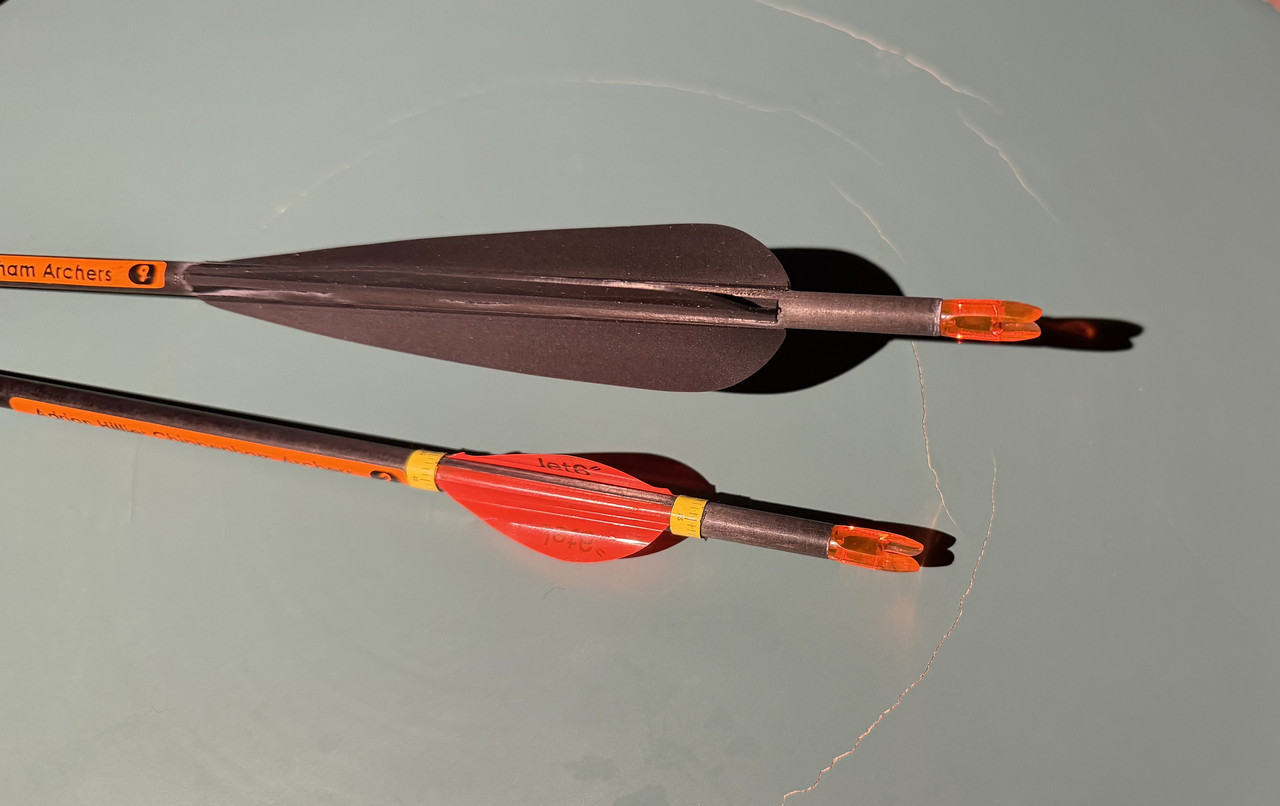 @Cougar - when you’re starting from scratch, it’s enough getting all the rest of the equipment together, trying to fathom how to make up a set of a dozen arrows for a recurve bow before even being able to use it is too big an ask. These arrows are carbon shafts, a second set, and the SpinVanes I wanted are far too complicated for a beginner to try fitting, which is why I’m now replacing them with standard vanes I can easily set up with a jig.