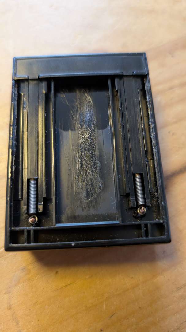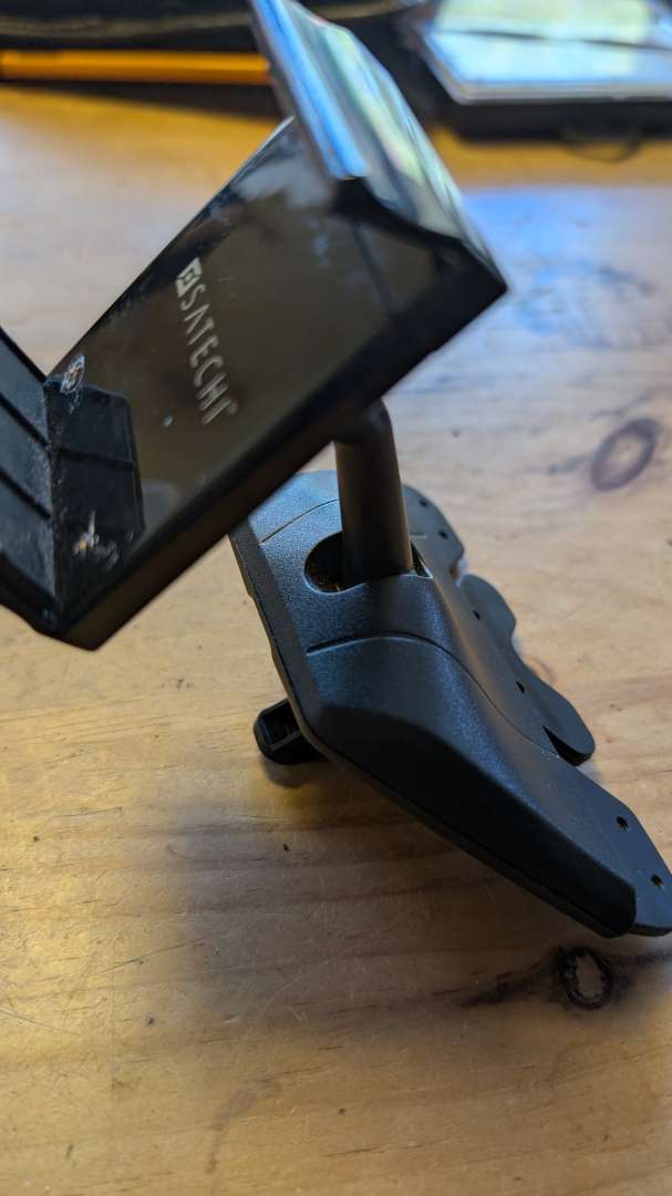 MrsP has a phone holder in her car that has a sprung sliding clamp. Except it stopped being sprung so wasn't much use for holding phones. I prised apart the mechanism and found that the two plastic lugs that fix the end of the springs had broken off, so drilled a couple of small holes and glued in some small lengths of copper wire. Reassembled and it's a functioning phone holder again.