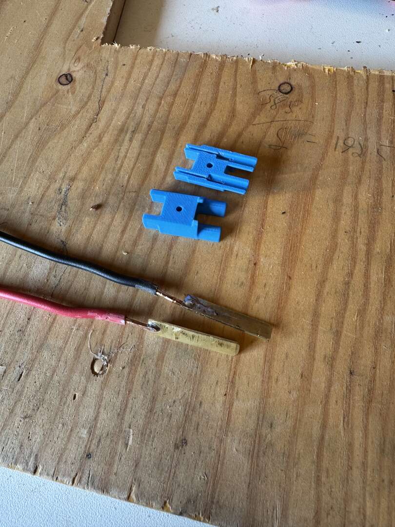 Measured up and printed new bits (blue parts). Couldn’t find any of the spade connectors in the right size so made some out of a spare bit of brass and even managed to not follow my usual approach of making a massive mess of the soldering (for me, anyway, I’m sure it’s terrible).