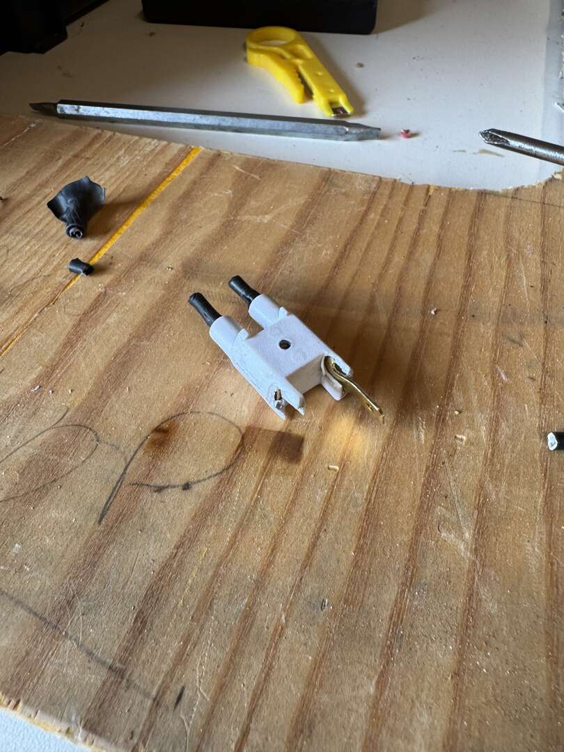 Repaired a hedge trimmer with a broken connector (white bit).