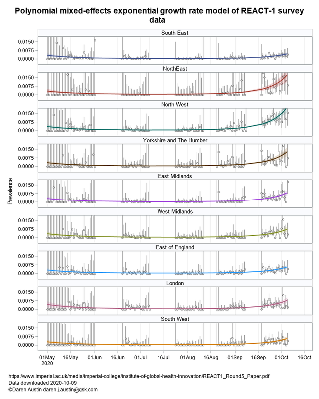 I'm not sure what you know about model fitting TiRed but I've been doing it for decades on a professional basis as a widely published scientist and it's clear from my results that I'm better at it than these official sources. Specifically (most recently) in robustly identifying that epidemic growth had started by the start of Aug when SAGE didn't even admit the possibility until near the end of that month and kept on with stupidly small growth rates until mid-September. ONS are doing a good survey but their analysis is a silly spline fit which is epidemiologically meaningless. Last week they said the number of daily infections had actually gone down, today they say it's doubled. Silly whiplash from a noisy unstable fitting method. Same with the REACT fit to short time series. There are standard ways of doing this sort of stuff properly, but it takes a little bit of skill and experience that they don't seem to have.