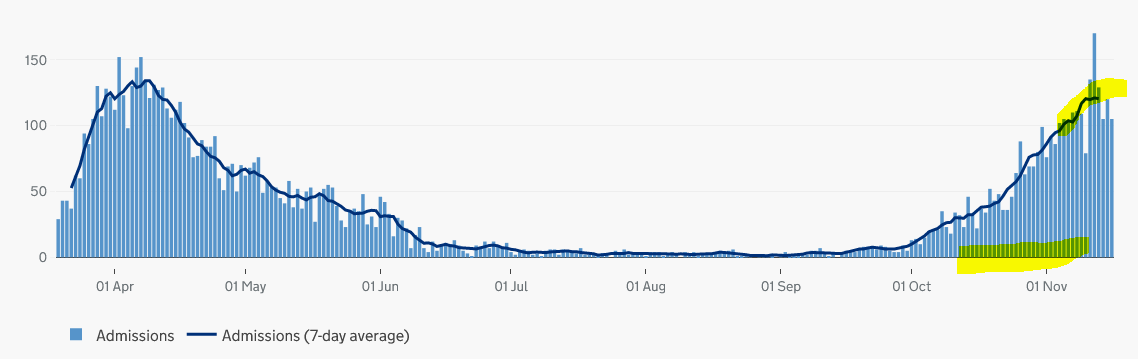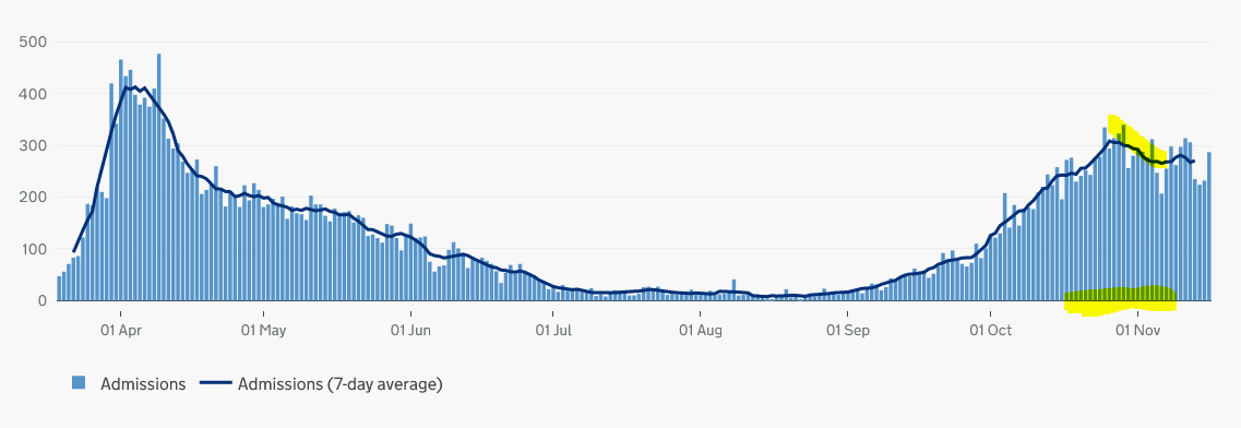 At the SECOND peak, NE and Yorkshire recorded errrr 400 admissions/day, and NW 300/day prior to Tier 3 and lockdown.