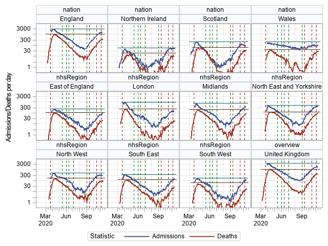 Precisely. In epidemic land, you have to plot data on semi-log plots, since cases, hospitalisations and deaths all grow or shrink in a geometric manner. A common slope indicates the same growth rate, irrespective of the starting levels. Common slopes for admissions were noted across the NHS regions. I've asked them to add a log-option to the plots, on https://coronavirus.data.gov.uk/ but none yet.