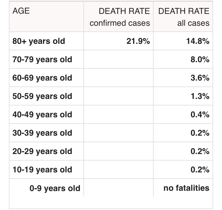However, I also don't fully understand the thinking of not attempting to isolate the most vulnerable groups now, particularly the elderly in care homes or those with significant co-morbidity. This is not a massively economically or socially active group, and they are the most likely to be in need of ICU. I understand that restrictions on their movement and visitors is a pain in the ass, but again, pushing some of these cases back even by a couple of months could be significant.