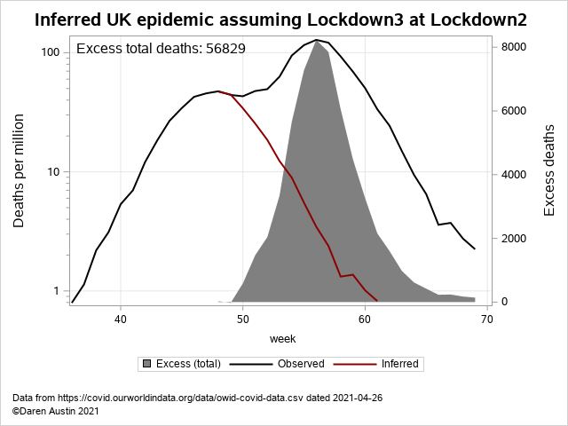 It is really. The area I coloured is the minimum extra, as an earlier lockdown should have led to an earlier decrease, rather than broadly staying flat. I thought about trying to draw the line showing that, but that would involve separating out the effects of lock down and vaccinations... which isn't really doable by any of us. A challenge for TiRed...? I think that would be unfair request to make, actually. I 'think' the decrease would have been much less steep than the one that eventually occurred later, as the vaccination programme was at a much earlier stage. So, closer to the mean line, but I suspect falling faster than it (not much of Europe was locking down for Christmas... or was it?)