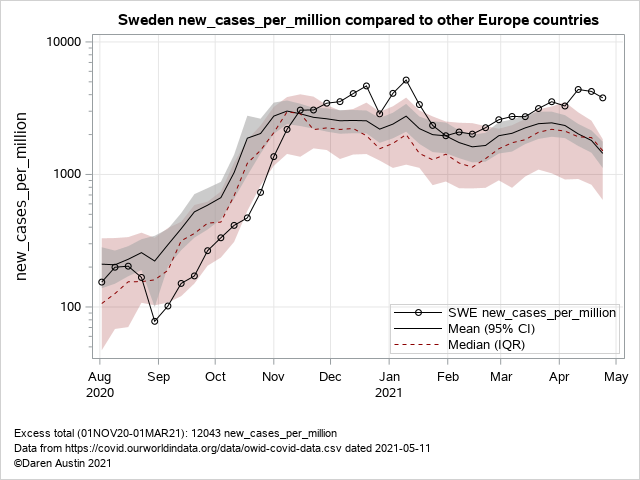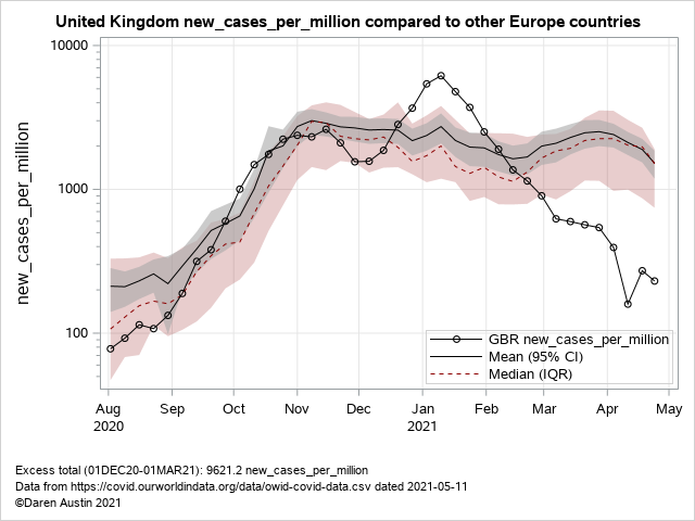 I think it rules out the nonsensical seasonality arguments as well. The other countries look no better - as noted by the tight confidence interval and inter-quartile range. Lockdown and vaccinal immunity work.