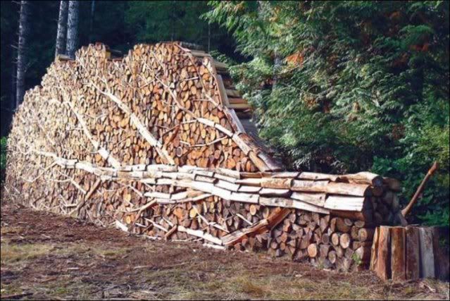 Gotta wonder if the guy who built that woodpile could ever bring hisself to taking even one log off of it...