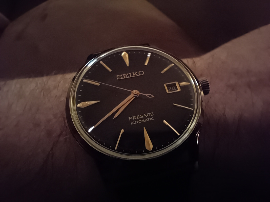I'm wearing my Irish Coffee Seiko Presage over Xmas. I'd forgotten how nice the face is even in poor light