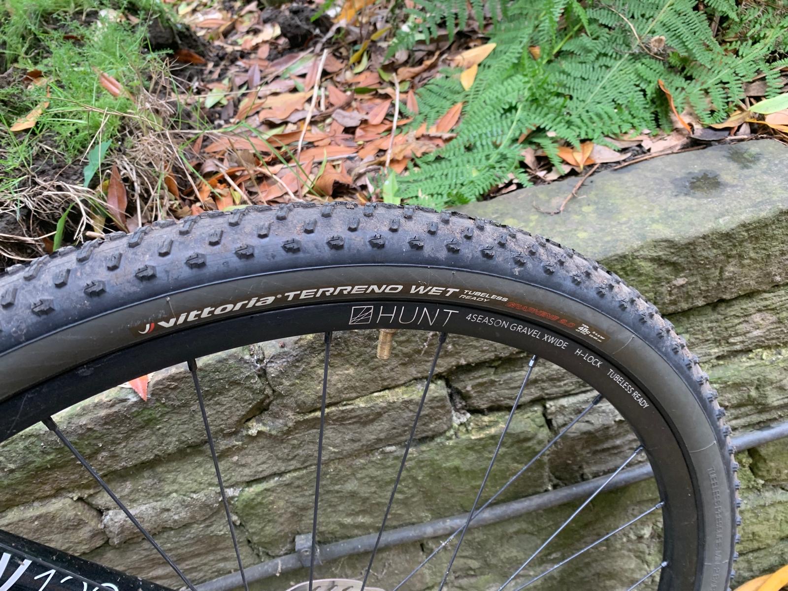 Fortunately, I had a Vittoria Terreno Wet available and mounted it up front. Much like MTBers I’m a fan of two different tyres on a gravel bike. The 45mm Wet seems much larger and higher volume, allowing me to go even lower on pressures.